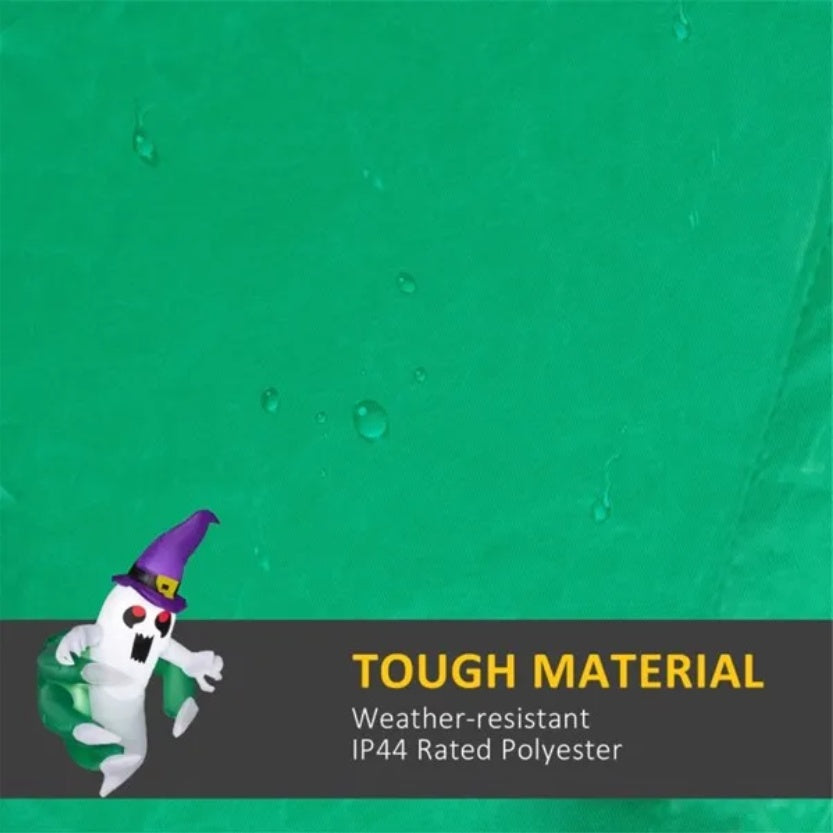 - - Halloween window sticker ghost wearing a purple hat being grabbed by a green claw inflatable brings the Halloween display together